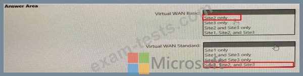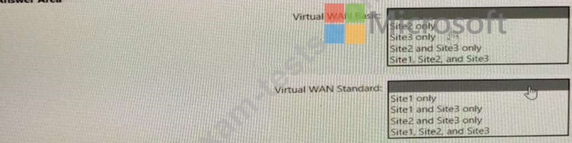 Which type of Virtual WAN can you use for each site? To answer, select the appropriate options in the answer area.