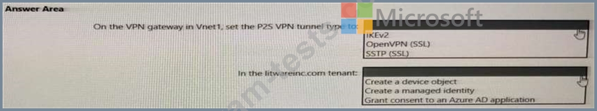 You need to implement a P2S VPN for the users in the branch office. The solution must meet the hybrid networking requirements.