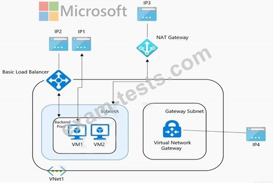 VNet1 has a virtual network gateway that has a public IP address named IP4.