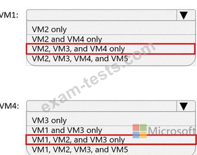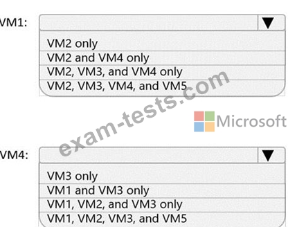 Which virtual machines can VM1 and VM4 ping successfully? To answer, select the appropriate options in the answer area.