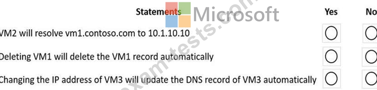 You have an Azure private DNS zone named contoso.com that is linked to the virtual networks shown in the following table.