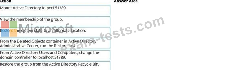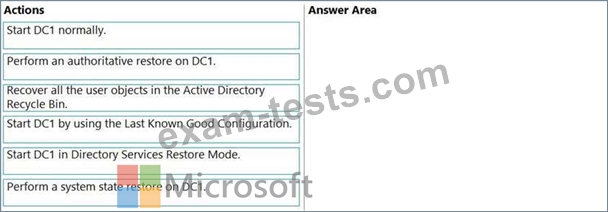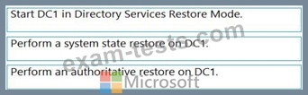 Your network contains an Active Directory Domain Services (AD DS) domain that has the Active Directory Recycle Bin enabled. The domain contains two domain controllers named DC1 and DC2. The system state of the domain controllers is backed up daily at 23:00 by using Windows Server Backup.