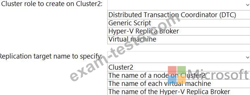 You plan to use Hyper-V Replica to replicate the virtual machines from Cluster1 to Cluster2.