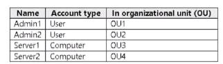 Your network contains an on-premises Active Directory Domain Services (AD DS) domain named contos.com. The domain contains the accounts shown in the following table.