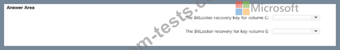 On which Active Directory object can you each BitLocker recovery key? To answer, select the appropriate options in the answer area.