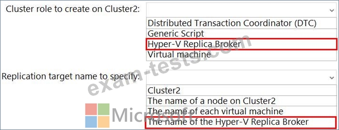 You have a cluster named Cluster2 in a disaster recovery site. Cluster2 contains two nodes that have the Hyper-V server role installed.