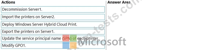 Migrate the shared printers to Server2 by using the Printer Migration Wizard.