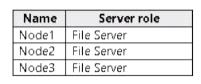 You have a failover cluster named Cluster1 that contains the nodes shown in the following table.