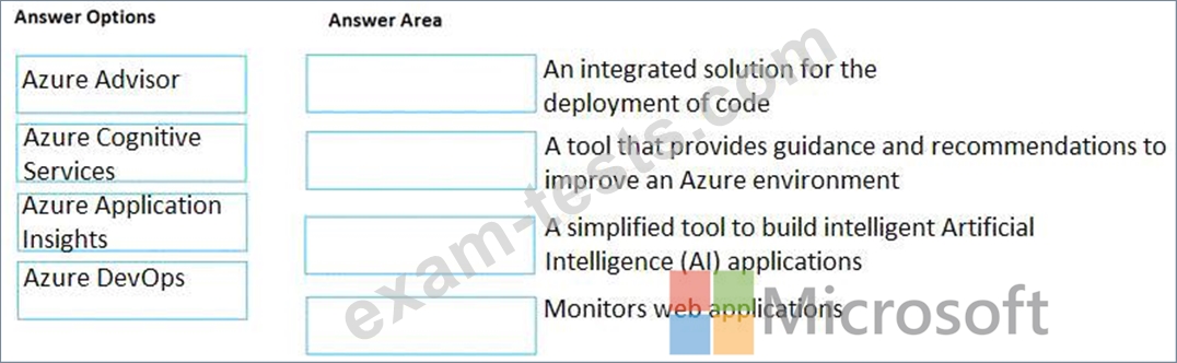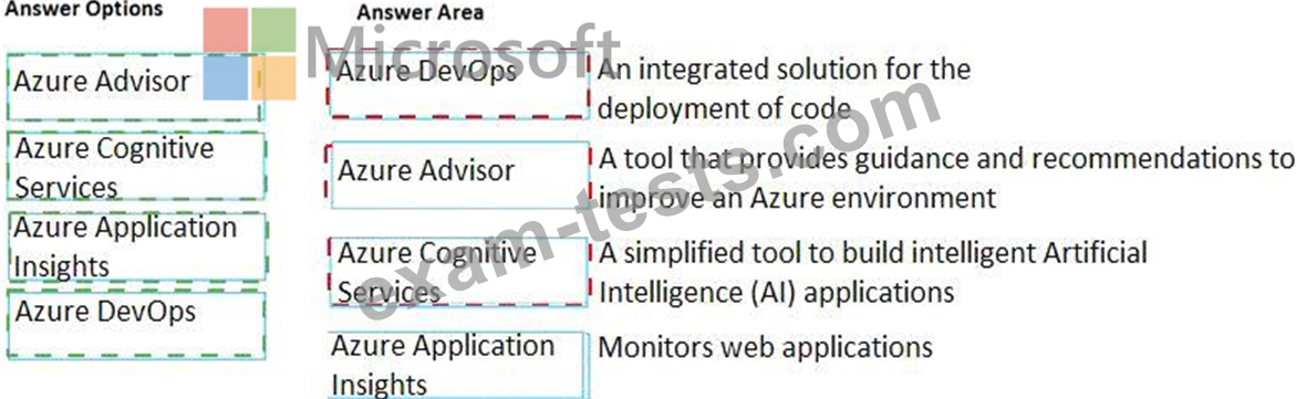 Instructions: To answer, drag the appropriate Azure service from the column on the left to its description on the right. Each service may be used once, more than once, or not at all.