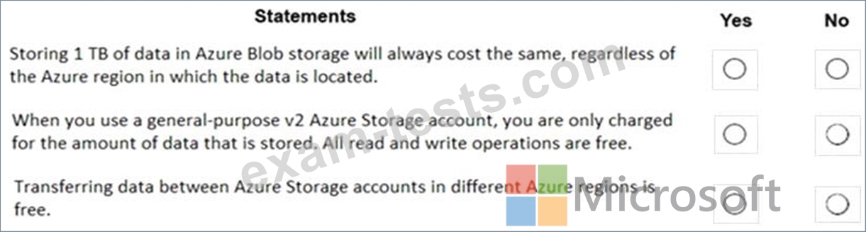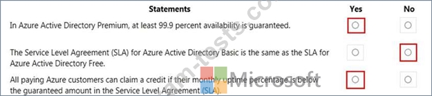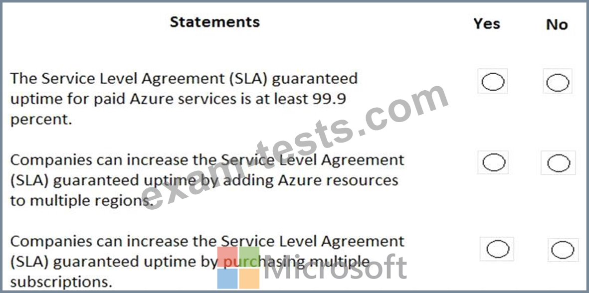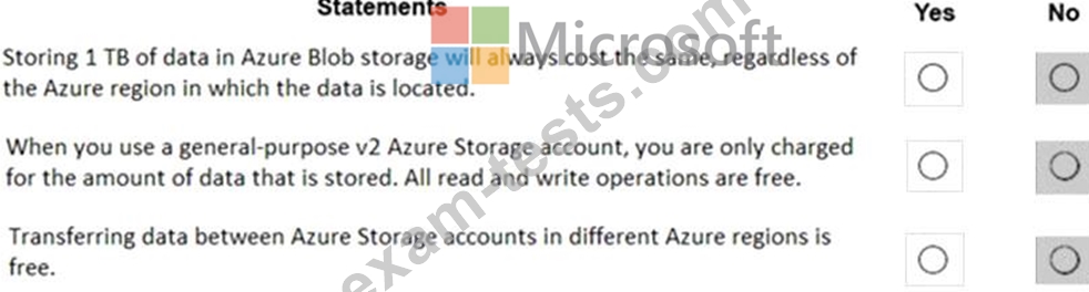 For each of the following statements, select Yes if the statement is true. Otherwise, select No.