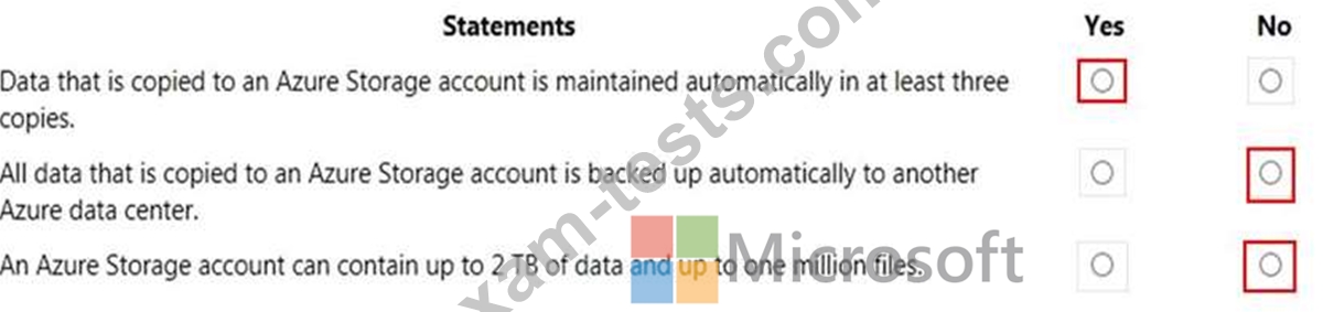 For each of the following statements, select Yes if the statement is true. Otherwise, select No.