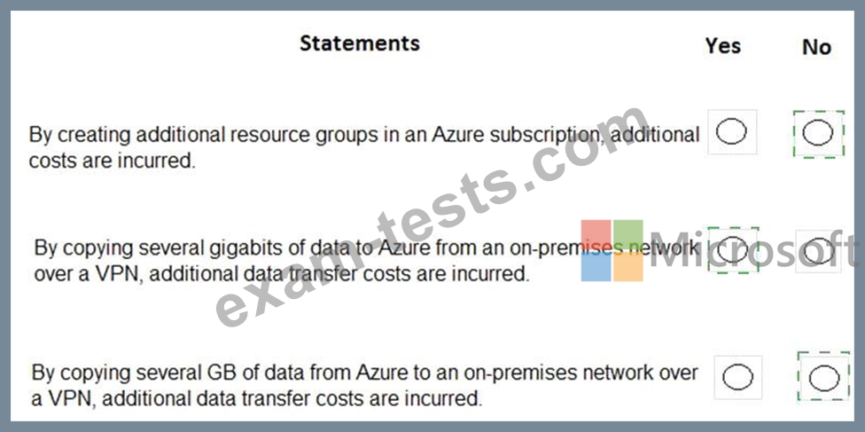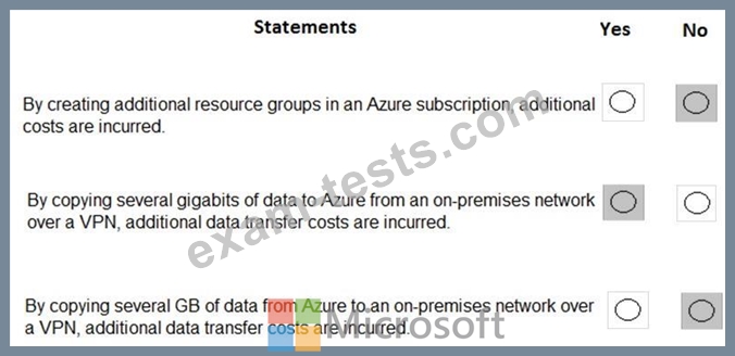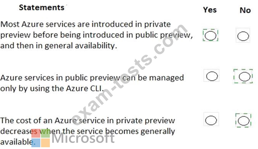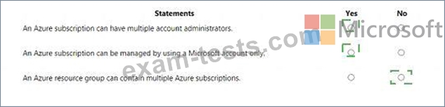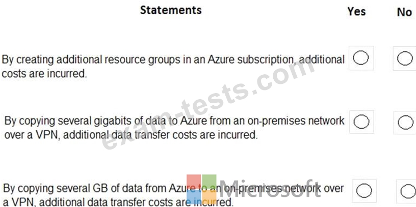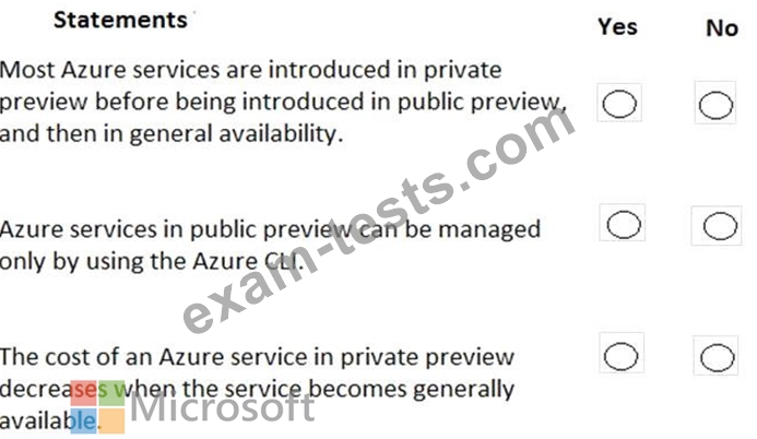 For each of the following statements, select Yes if the statement is true. Otherwise, select No.