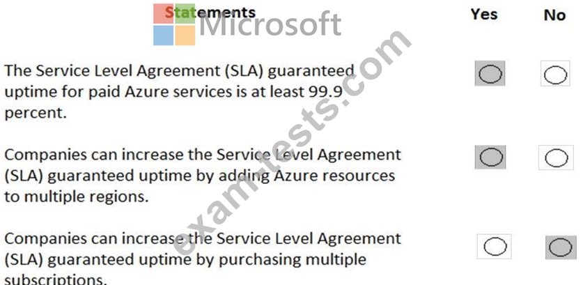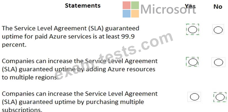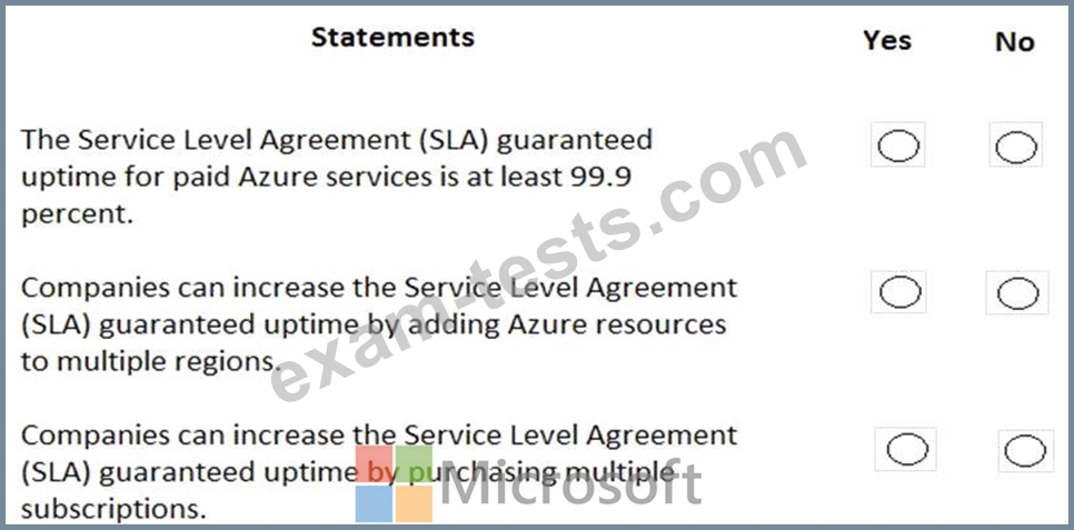 For each of the following statements, select Yes if the statement is true. Otherwise, select No.
