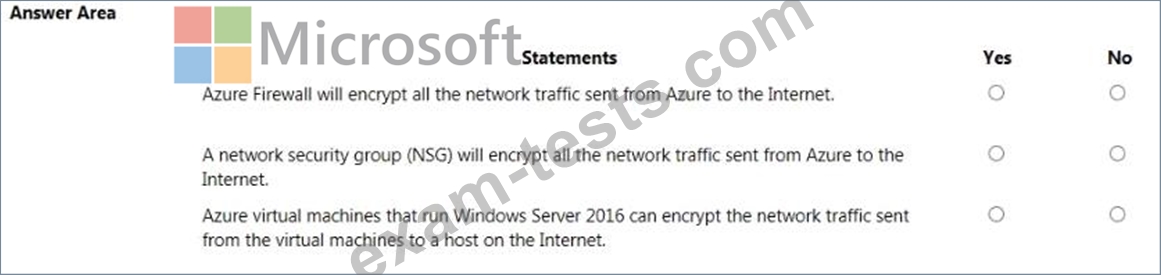 For each of the following statements, select Yes if the statement is true. Otherwise, select No. NOTE: Each correct selection is worth one point.