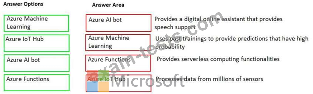 Instructions: To answer, drag the appropriate Azure service from the column on the left to its description on the right. Each service may be used once, more than once, or not at all.