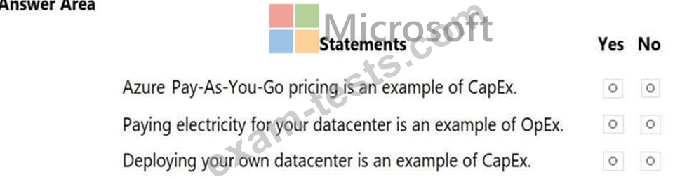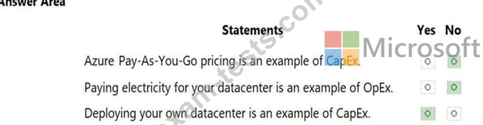 For each of the following statements, select Yes if the statement is true. Otherwise, select No.