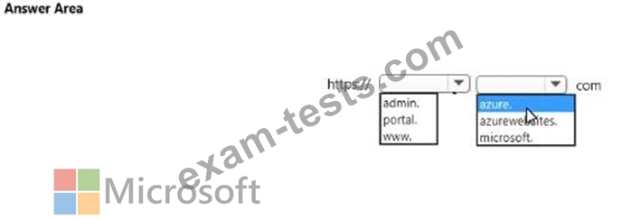 To which URL should you connect to manage all the Azure resources? To answer, select the appropriate options in the answer area.