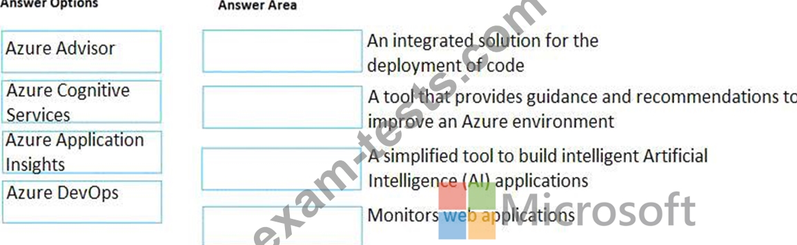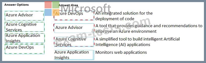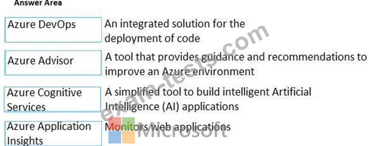 Instructions: To answer, drag the appropriate Azure service from the column on the left to its description on the right. Each service may be used once, more than once, or not at all.