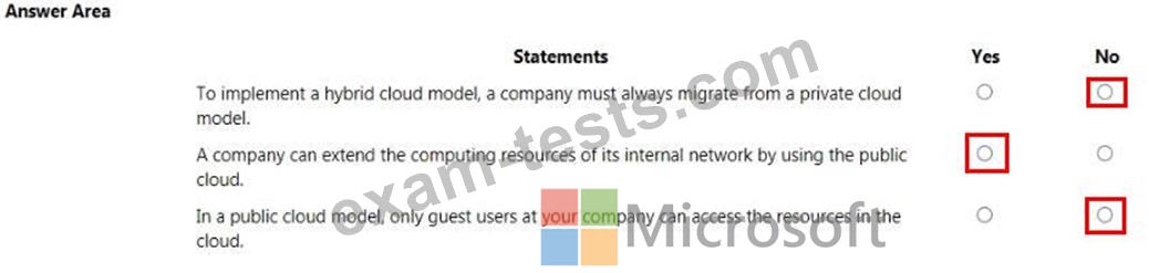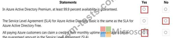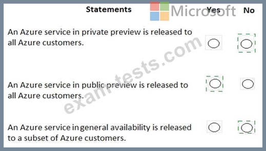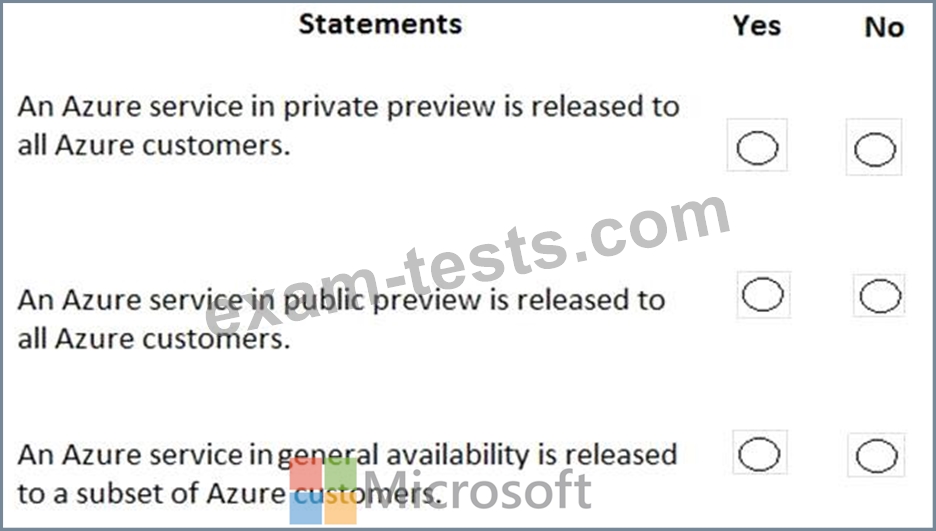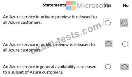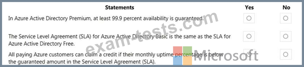For each of the following statements, select Yes if the statement is true. Otherwise, select No.