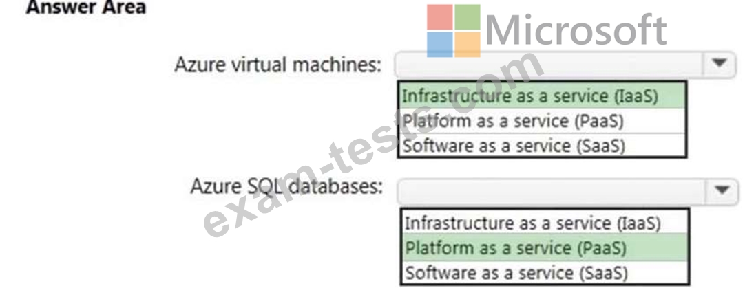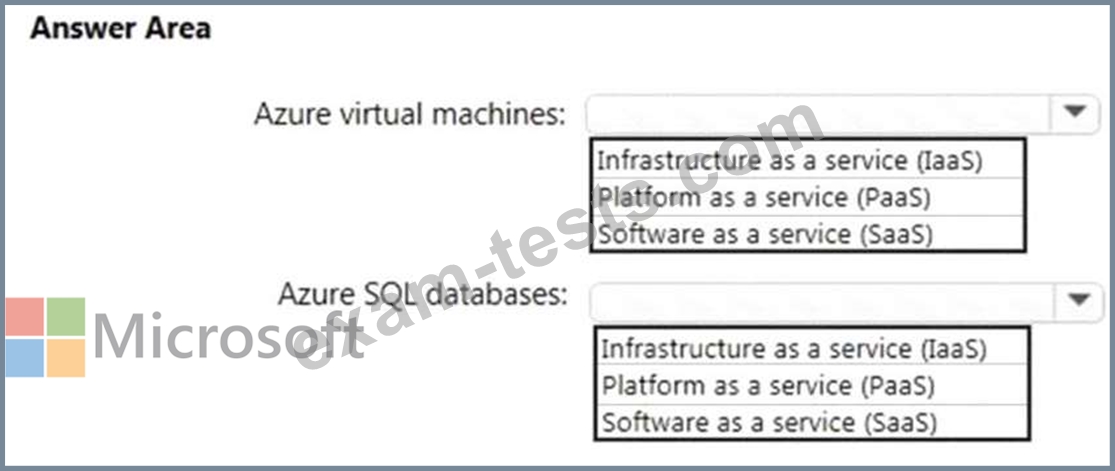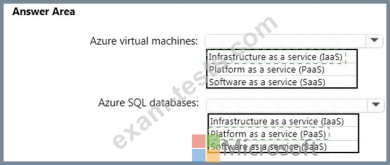 Which cloud deployment solution is used for Azure virtual machines and Azure SQL databases? To answer, select the appropriate options in the answer area.