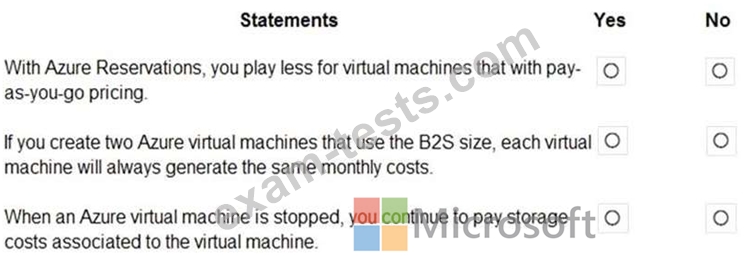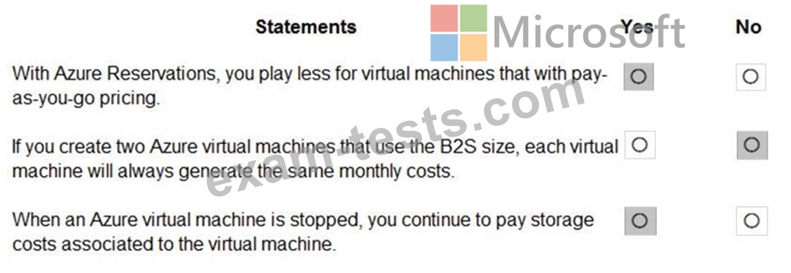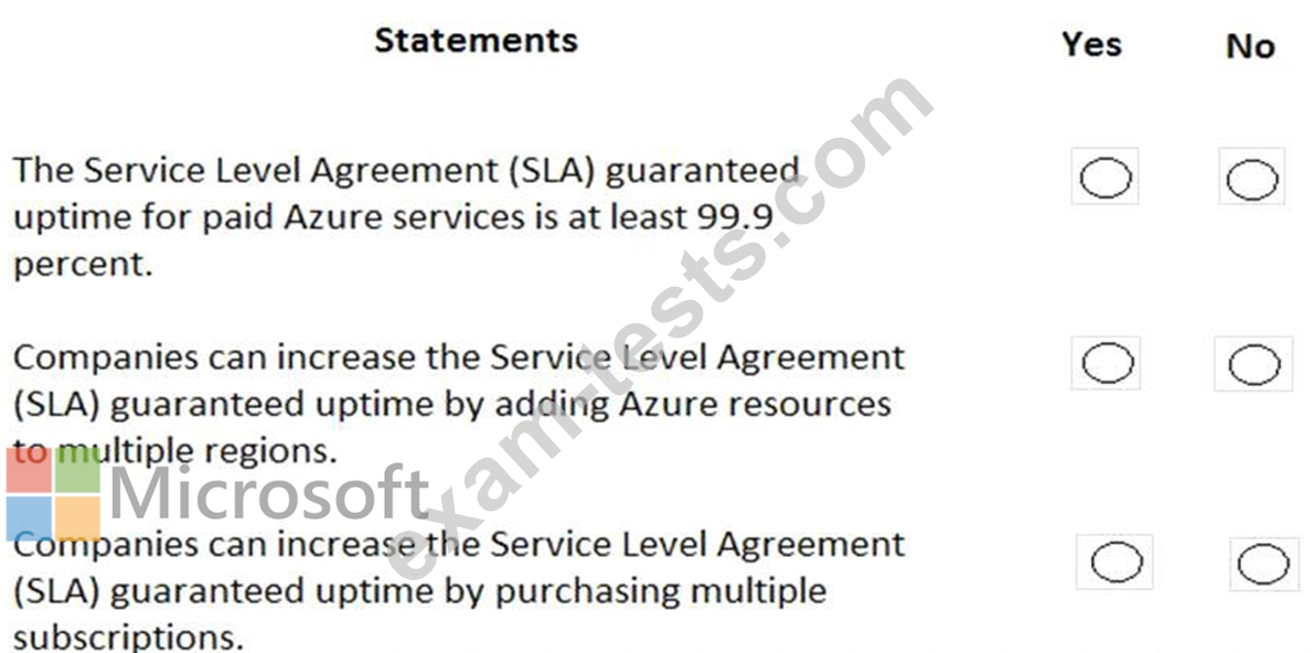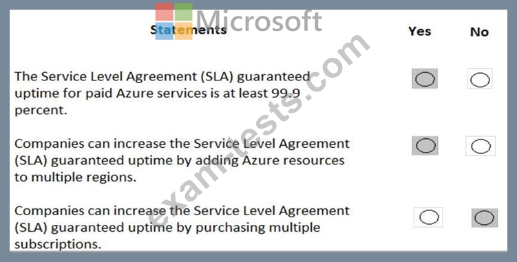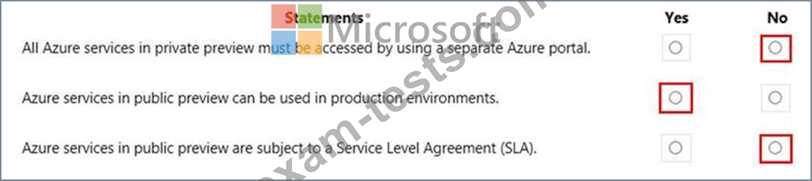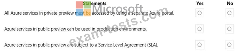 For each of the following statements, select Yes if the statement is true. Otherwise, select No.