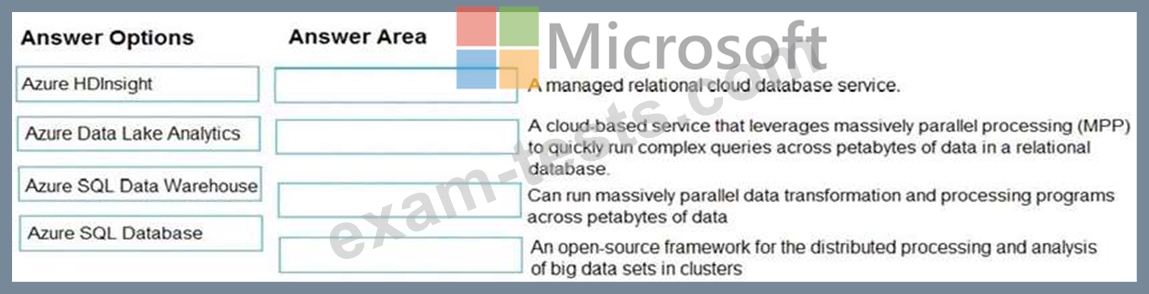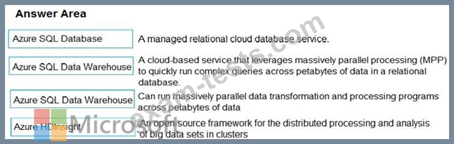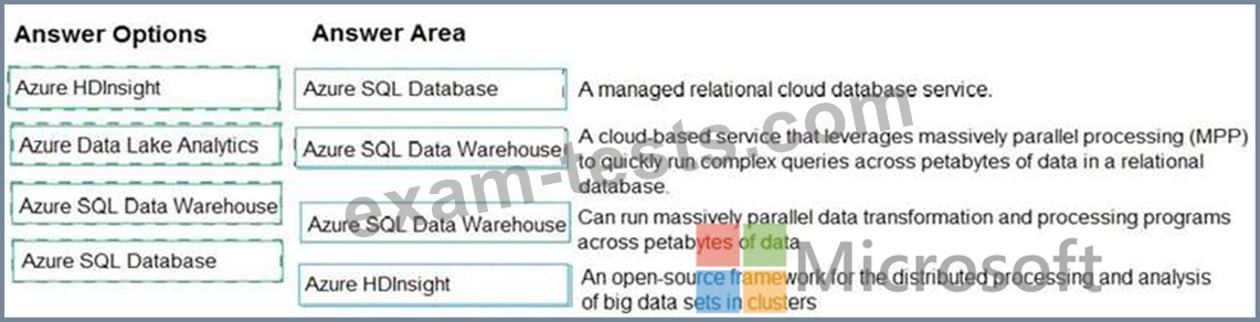 Instructions: To answer, drag the appropriate Azure service from the column on the left to its description on the right. Each service may be used once, more than once, or not at all.