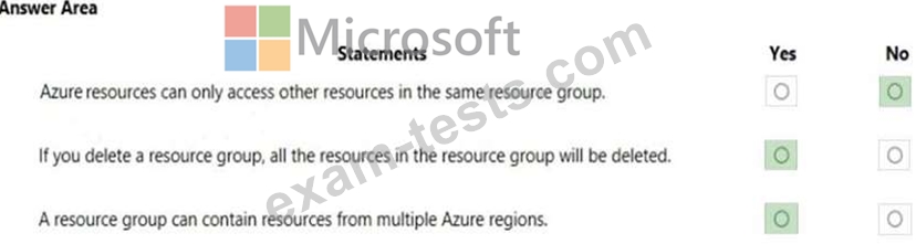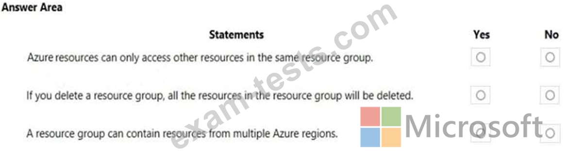 For each of the following statements, select Yes if the statement is true. Otherwise, select No.