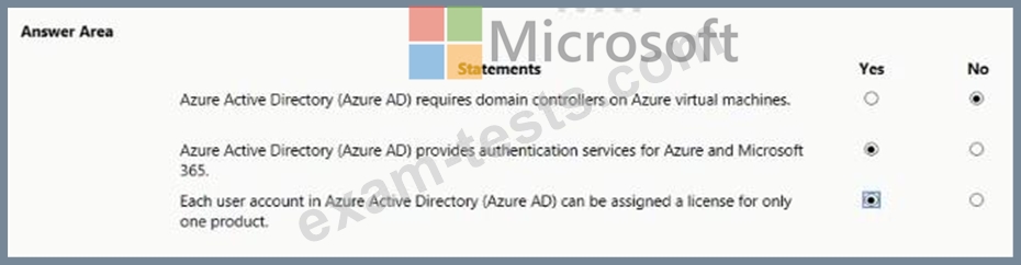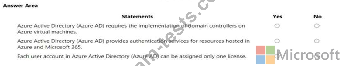 For each of the following statements, select Yes if the statement is true. Otherwise, select No. NOTE: Each correct selection is worth one point.
