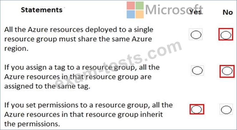 For each of the following statements, select Yes if the statement is true. Otherwise, select No.