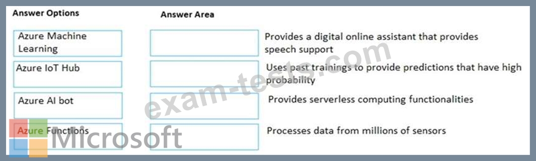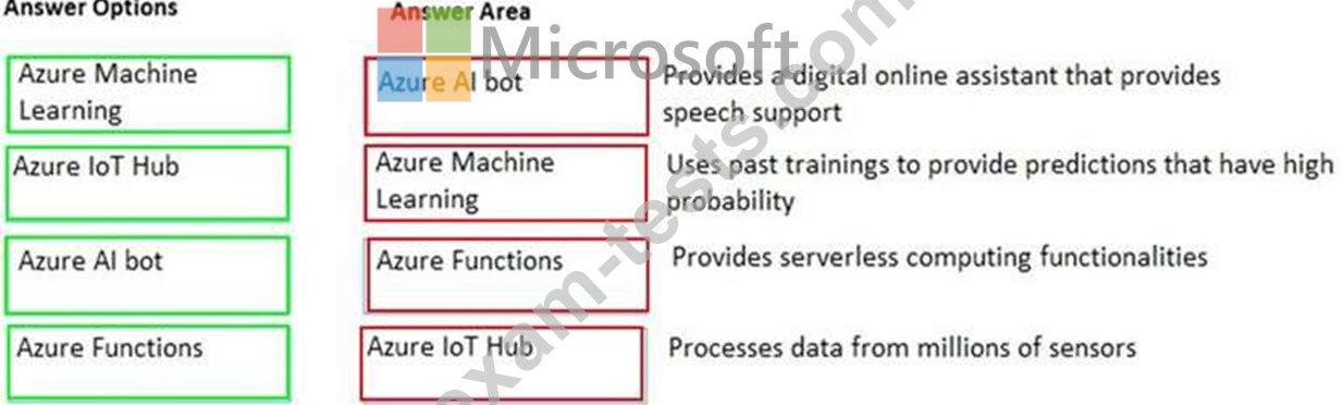 Instructions: To answer, drag the appropriate Azure service from the column on the left to its description on the right. Each service may be used once, more than once, or not at all.