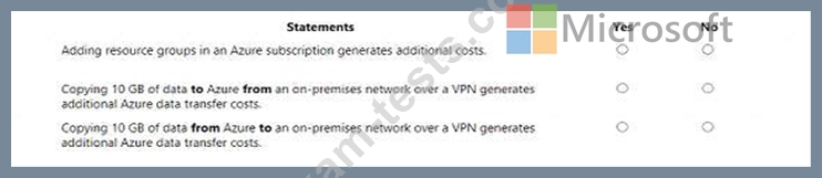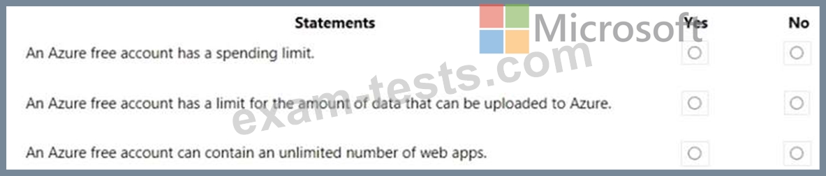 For each of the following statements, select Yes if the statement is true. Otherwise, select No.