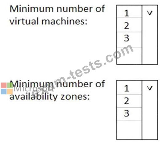 What is the minimum number of virtual machines and the minimum number of availability zones you should recommend for the deployment? To answer, select the appropriate options in the answer area.