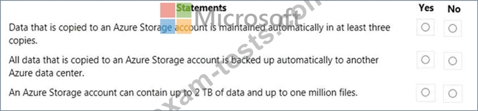 For each of the following statements, select Yes if the statement is true. Otherwise, select No.