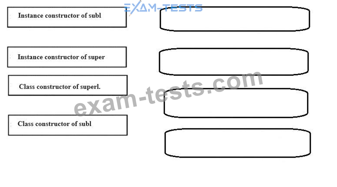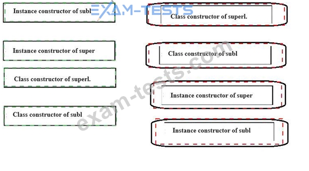 * Class constructor of subl. This is because the class constructor is a static method that is executed automatically before the class is accessed for the first time. The class constructor is used to initialize the static attributes and components of the class. The class constructor of the subclass is executed after the class constructor of the superclass, as the subclass inherits the static components of the superclass12