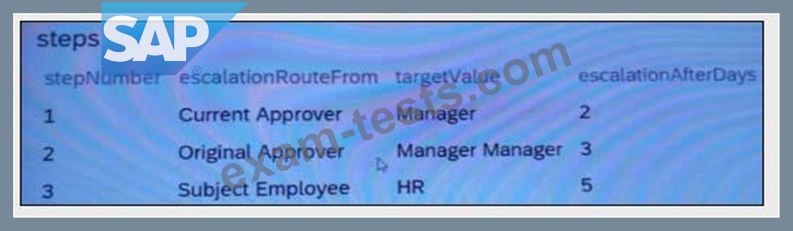 The Escalation shown below is configured in your client's instance. This Escalation is referenced in the Job Change Workflow. The Job Change Workflow is triggered for an employee and the workflow has stalled. In what scenario will the Human Resources manager receive an escalation notification if the Manager does not take action after 2 days? There are 2 correct answers to this question.