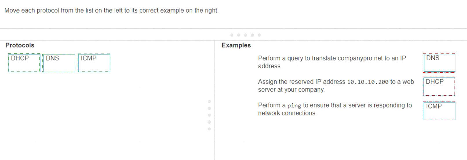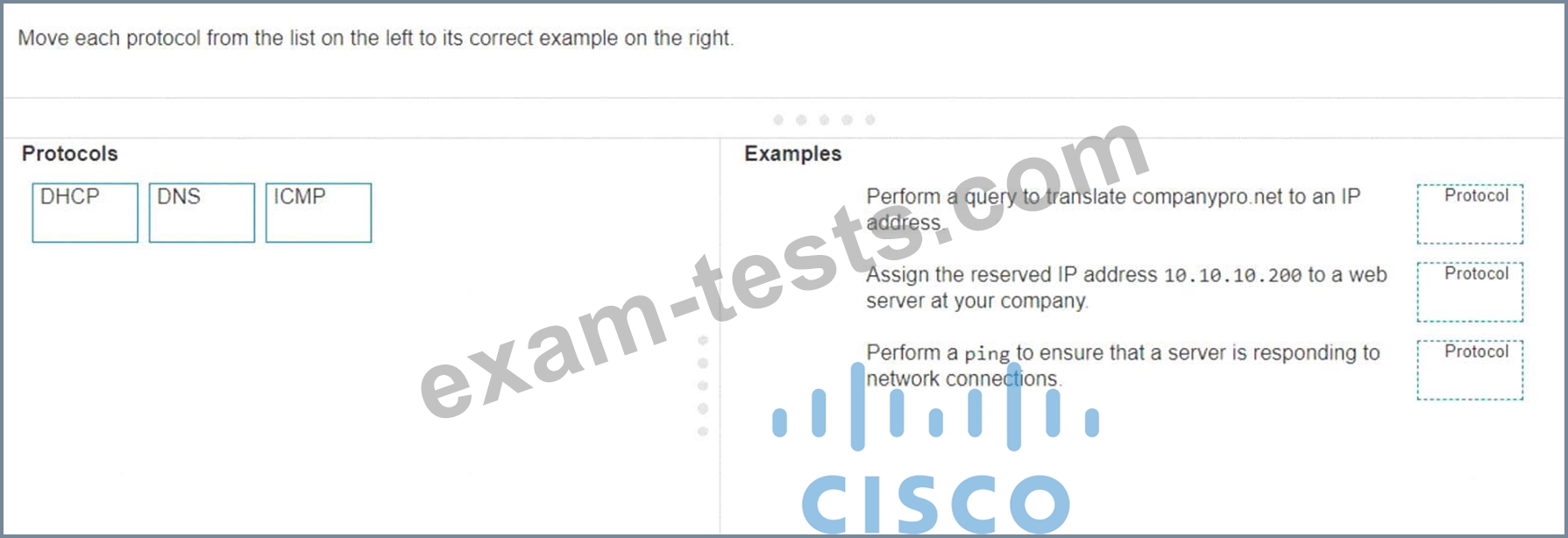 Move each protocol from the list on the left to its correct example on the right.