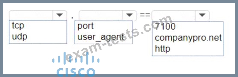 Which Wireshark filter options would you use to filter the results? Complete the command by selecting the correct option from each drop-down list.