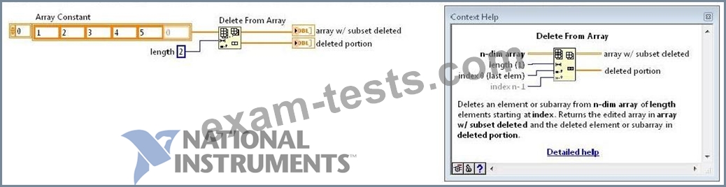 What value will be displayed in the array w/ subset deleted and the deleted portion indicators after the VI completes execution?