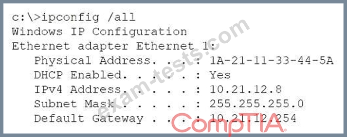 * Has an IP address of 10.21.12.8