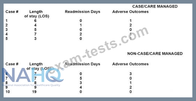A study was performed to compare quality outcomes between case/care managed groups and non-case/care managed groups tor elective coronary artery bypass. The results are as follows: