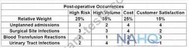 A quality professional has been asked to assist with prioritizing quality performance Initiatives In the surgery department. Given the Information In the matrix below, which of the following performance Initiatives should take priority?