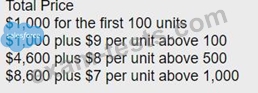 Universal Containers (UC) licenses shipping software that is sold for a fixed price based on each quantity tier as seen in the table below. For example, buying eight licenses would cost a total of $1,800 rather than multiplying unit price by quantity. Further discounts on this product are unavailable.