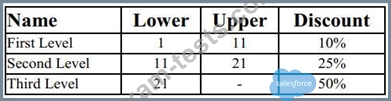 Universal Containers has aslab Discount Schedule for Product A with these Discount Tiers: