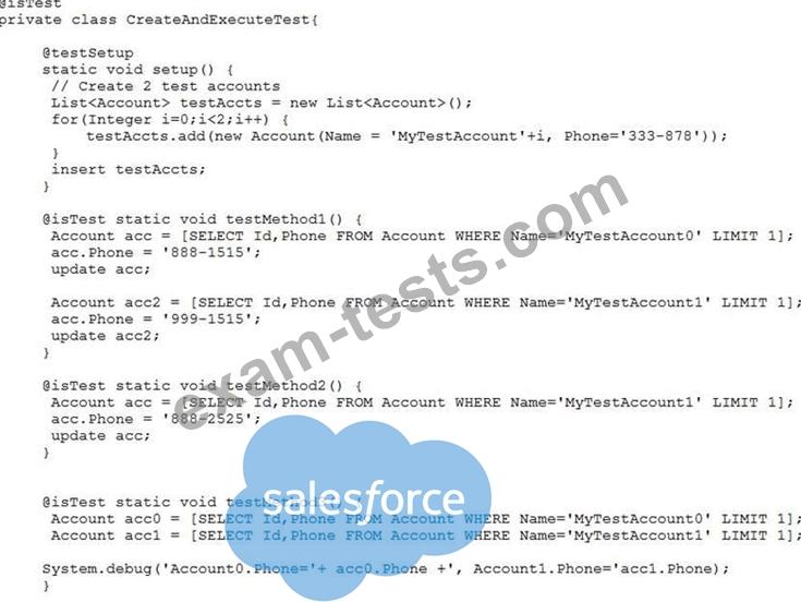 What is the result of the debug statements in testMethod3 when you create test data using testSetup in below code?