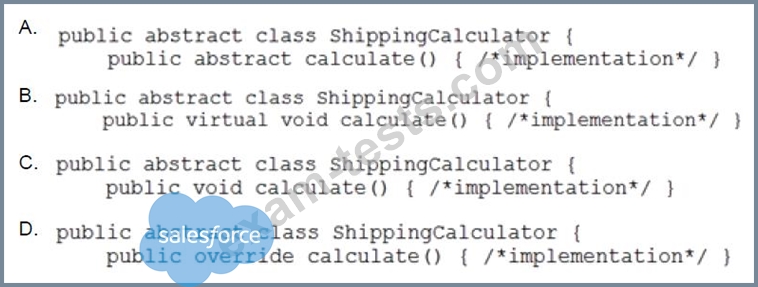 A developer must create a ShippingCalculator class that cannot be instantiated and must include a working default implementation of a calculate method, that sub-classes can override.