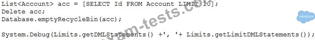 An Apex transaction inserts 100 Account records and 2,000 Contact records before encountering a DML exception when attempting to insert 500 Opportunity records.