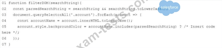Which code should replace the placeholder comment on line 05 to highlight accounts that match the search string'