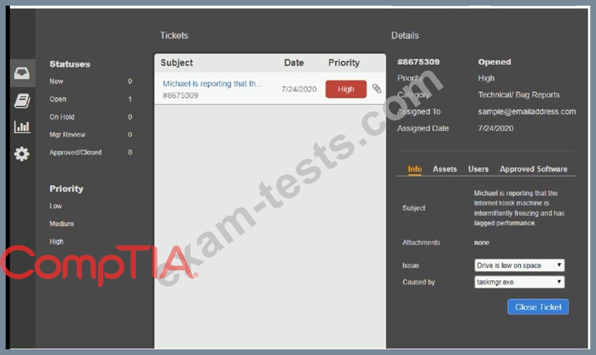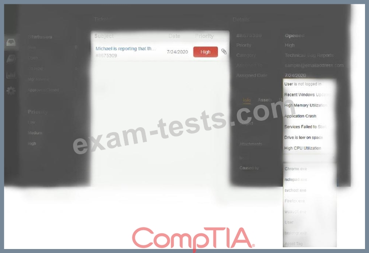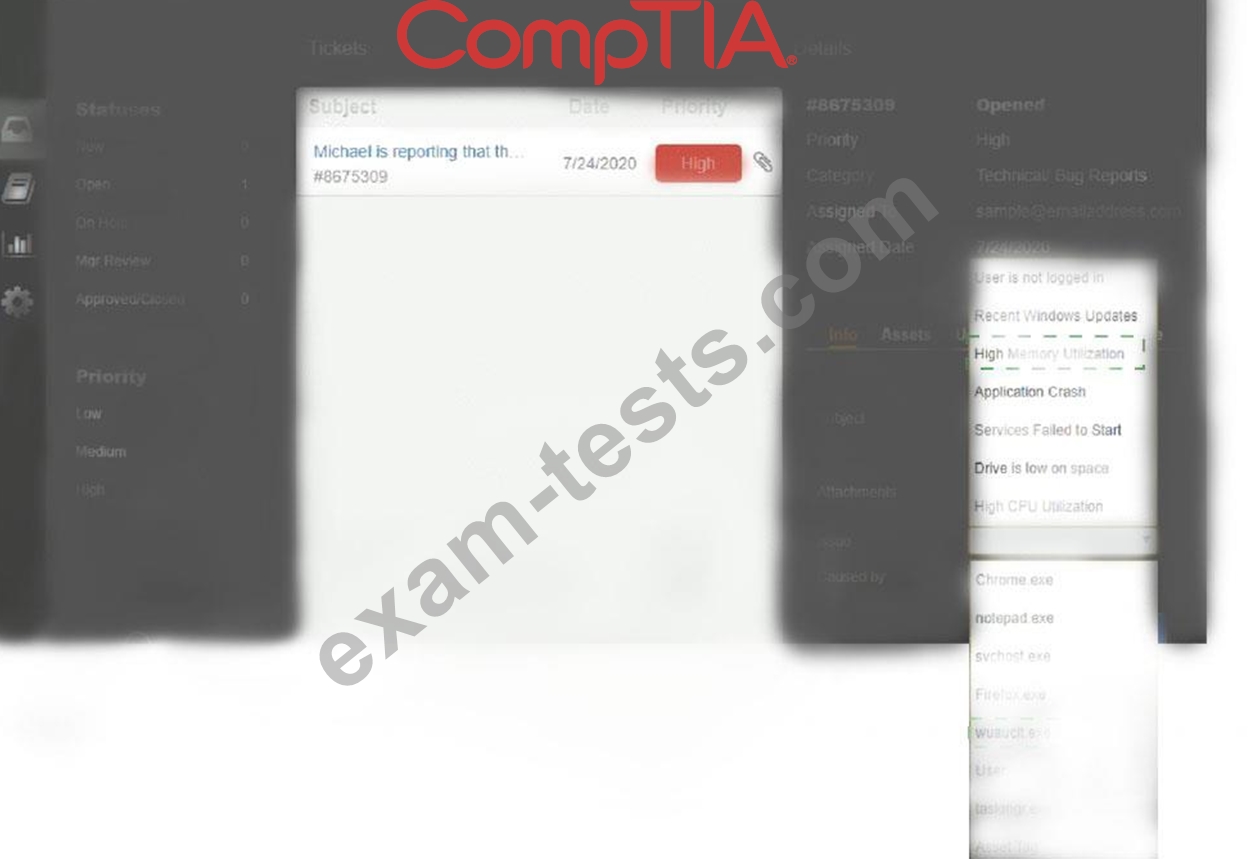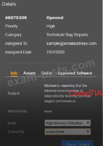 Click on me ticket to see the ticket details Additional content is available on tabs within the ticket First, select the appropriate issue from the drop-down menu. Then, select the MOST likely root cause from second drop-down menu If at any time you would like to bring back the initial state of the simulation, please click the Reset All button