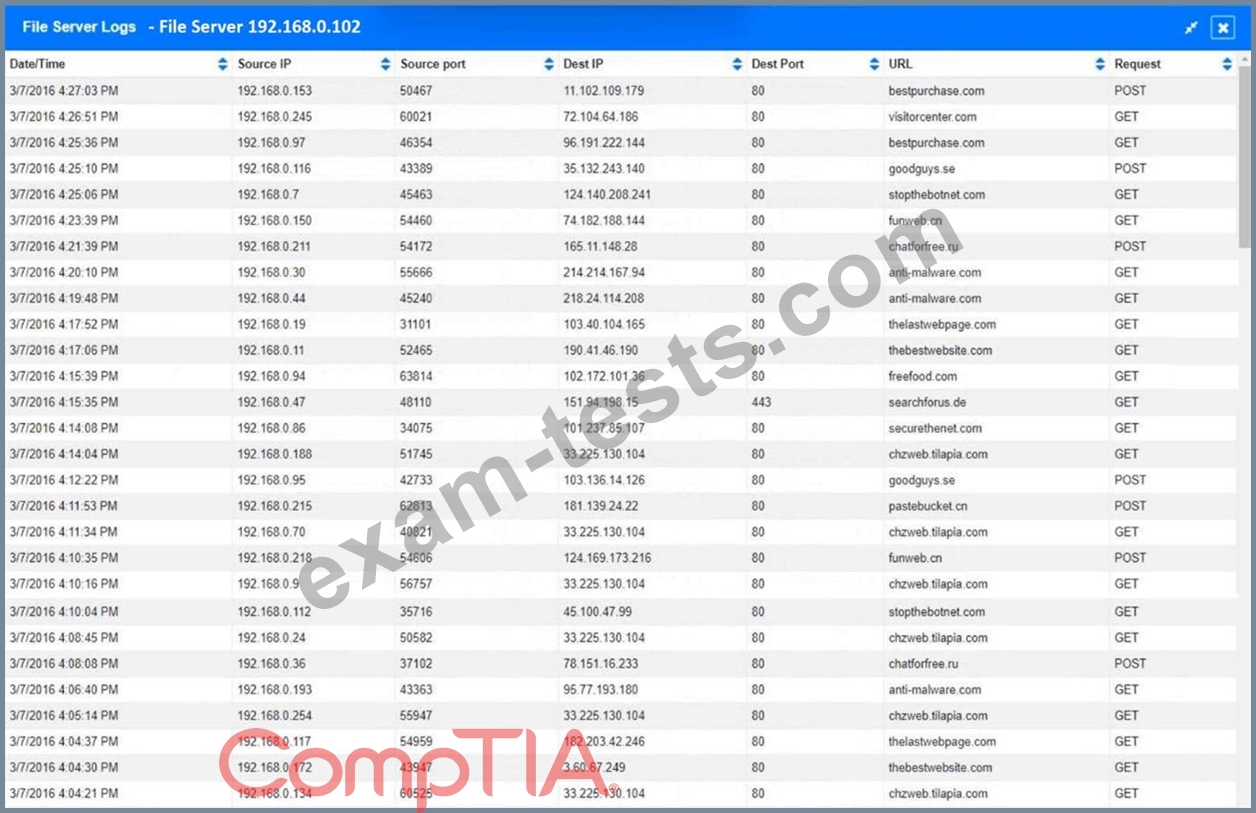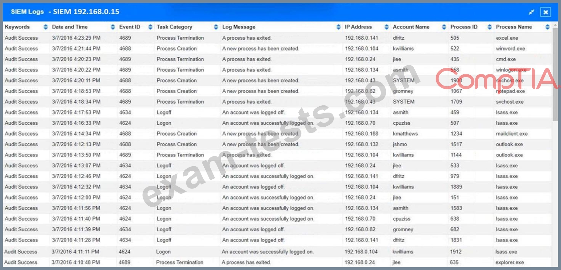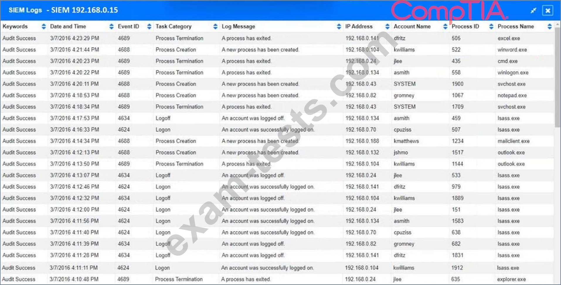 Upon arrival, the cybersecurity analyst reviews several security logs.