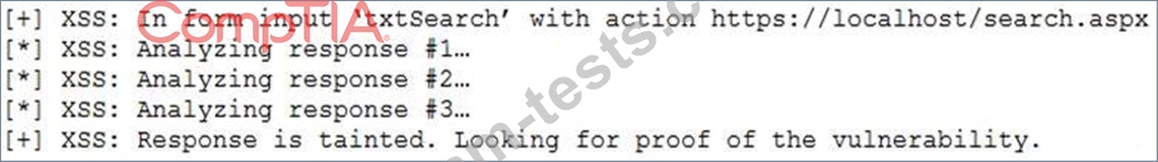 A security analyst recently used Arachni to perform a vulnerability assessment of a newly developed web application. The analyst is concerned about the following output: